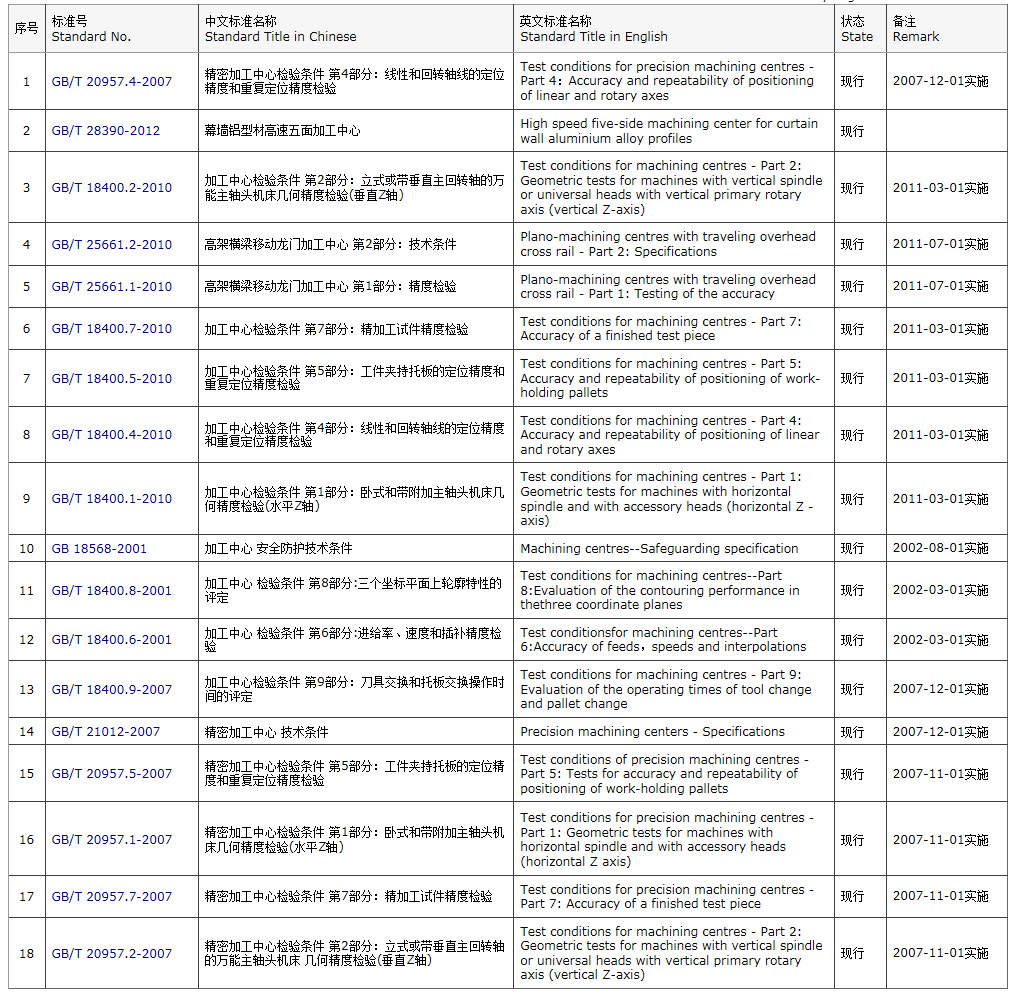 加工中心 国家标准目录