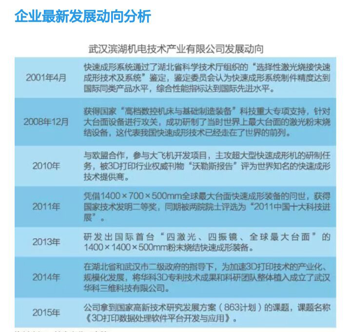 现阶段,主流类别的3D打印技术在国内基本都能找到对应的生产企业。部分生产企业是从90年代起,便进入这一领域,有一定的技术和市场积累。
