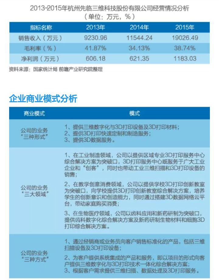 杭州先临三维科技股份有限公司是一家专业提供三维数字化技术综合解决方案的国家火炬计划高新技术企业,公司于2014年8月8日在新三板挂牌(830978),为中国三维数字化与3D打印行业第一股。