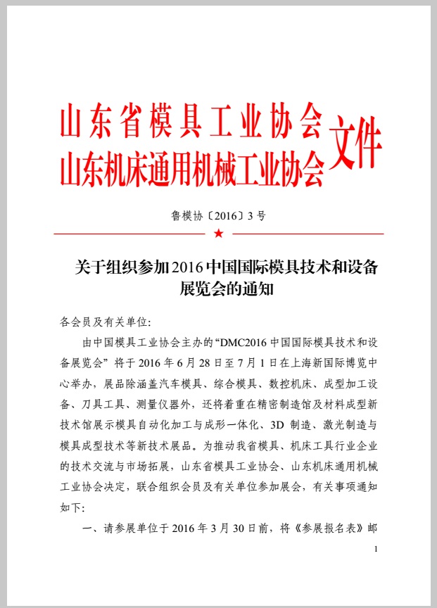 关于组织参加2016中国国际模具技术和设备展览会的通知