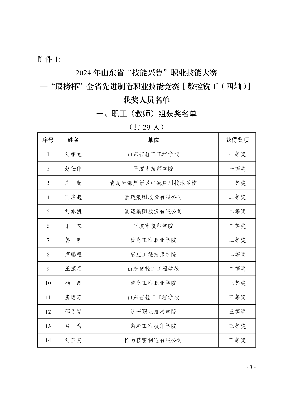 “辰榜杯”全省先进制造职业技能竞赛数控铣工(四轴)获奖名单的通知.pdf