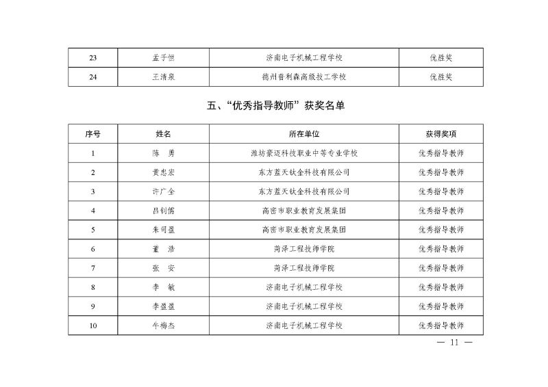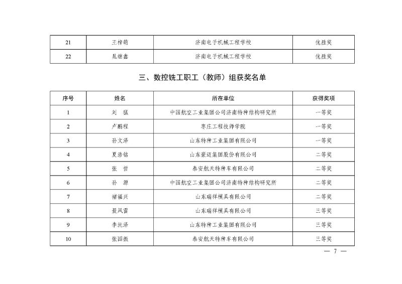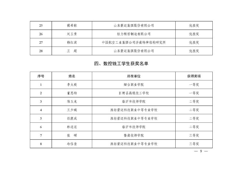 山东省先进制造职业技能竞赛(数控车工、数控铣工)获奖通知.pdf