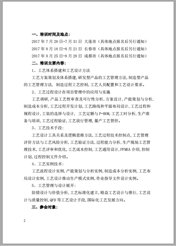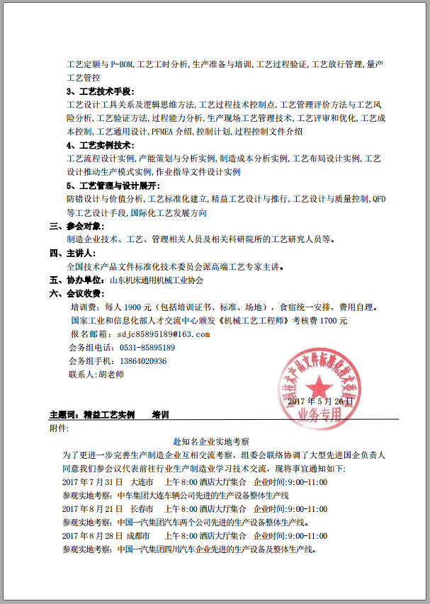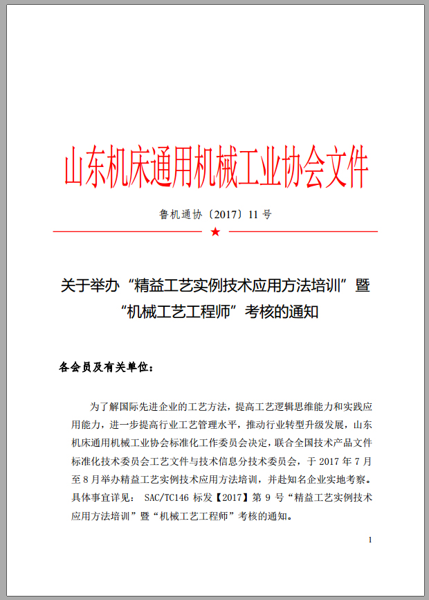 关于举办“精益工艺实例技术应用方法培训”暨“机械工艺工程师”考核的通知