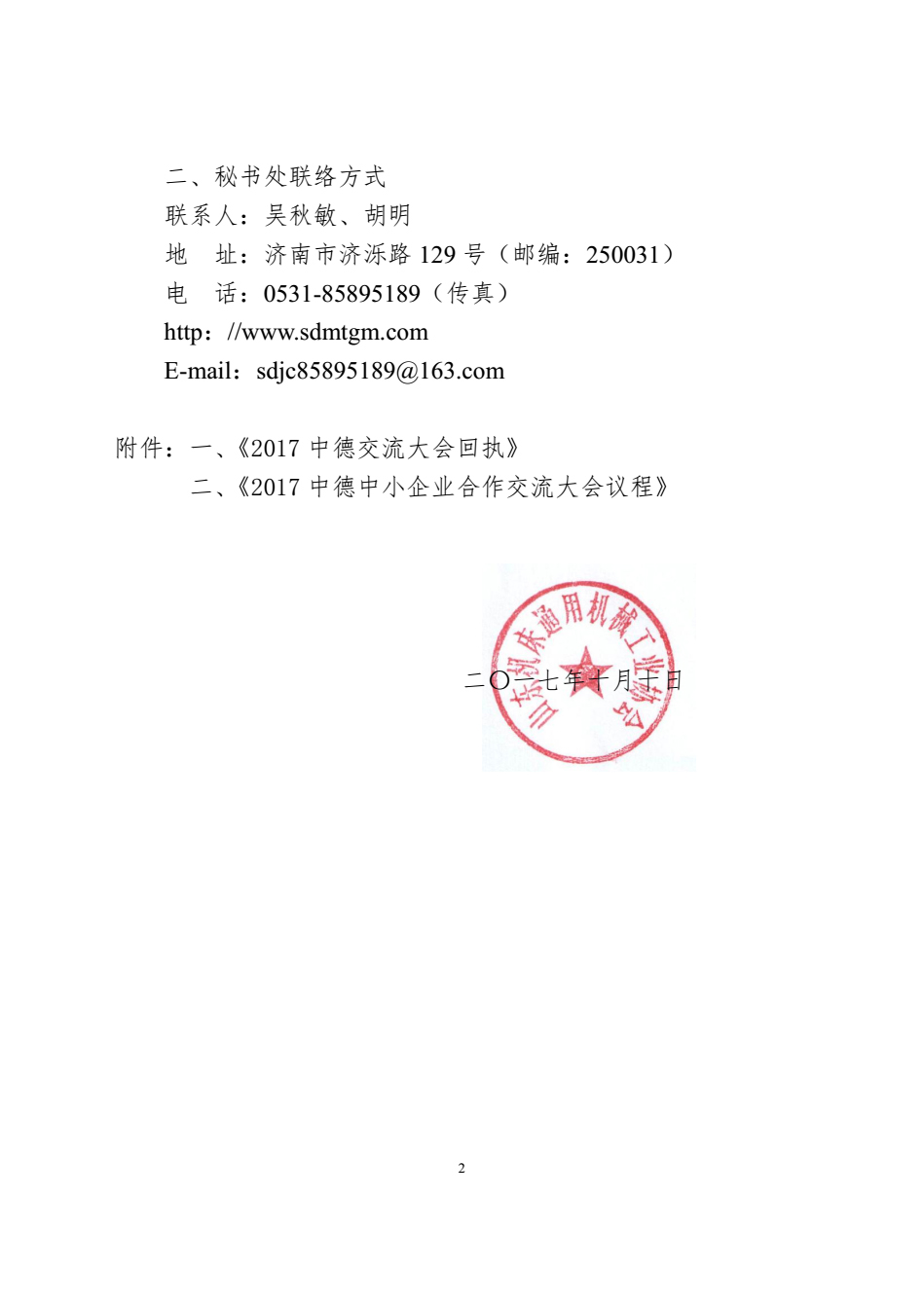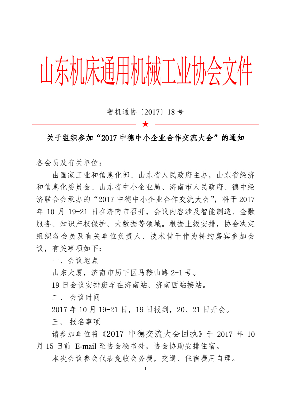 关于组织参加“2017 中德中小企业合作交流大会” 的通知