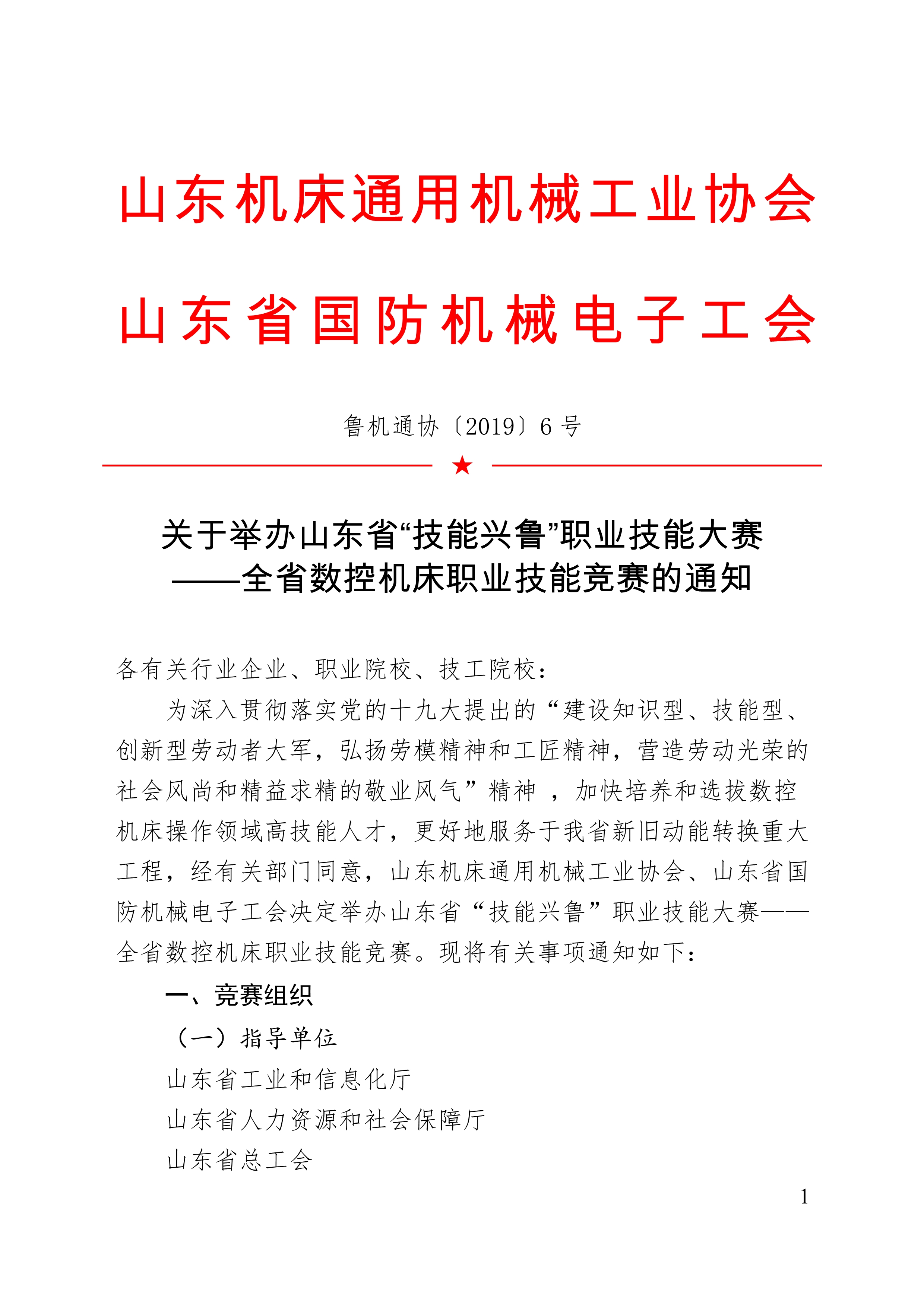关于举办山东省“技能兴鲁”职业技能大赛 ——全省数控机床职业技能竞赛的通知