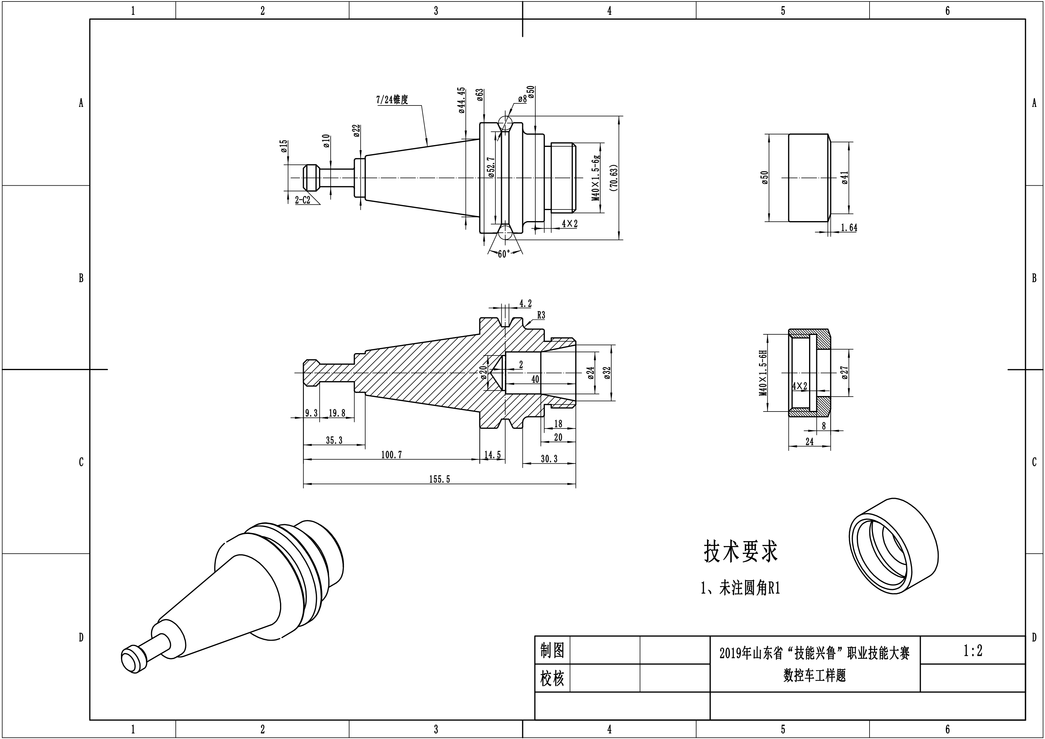 2019年山东省“技能兴鲁”职业技能大赛数控车工项目准备通知单及模拟试题