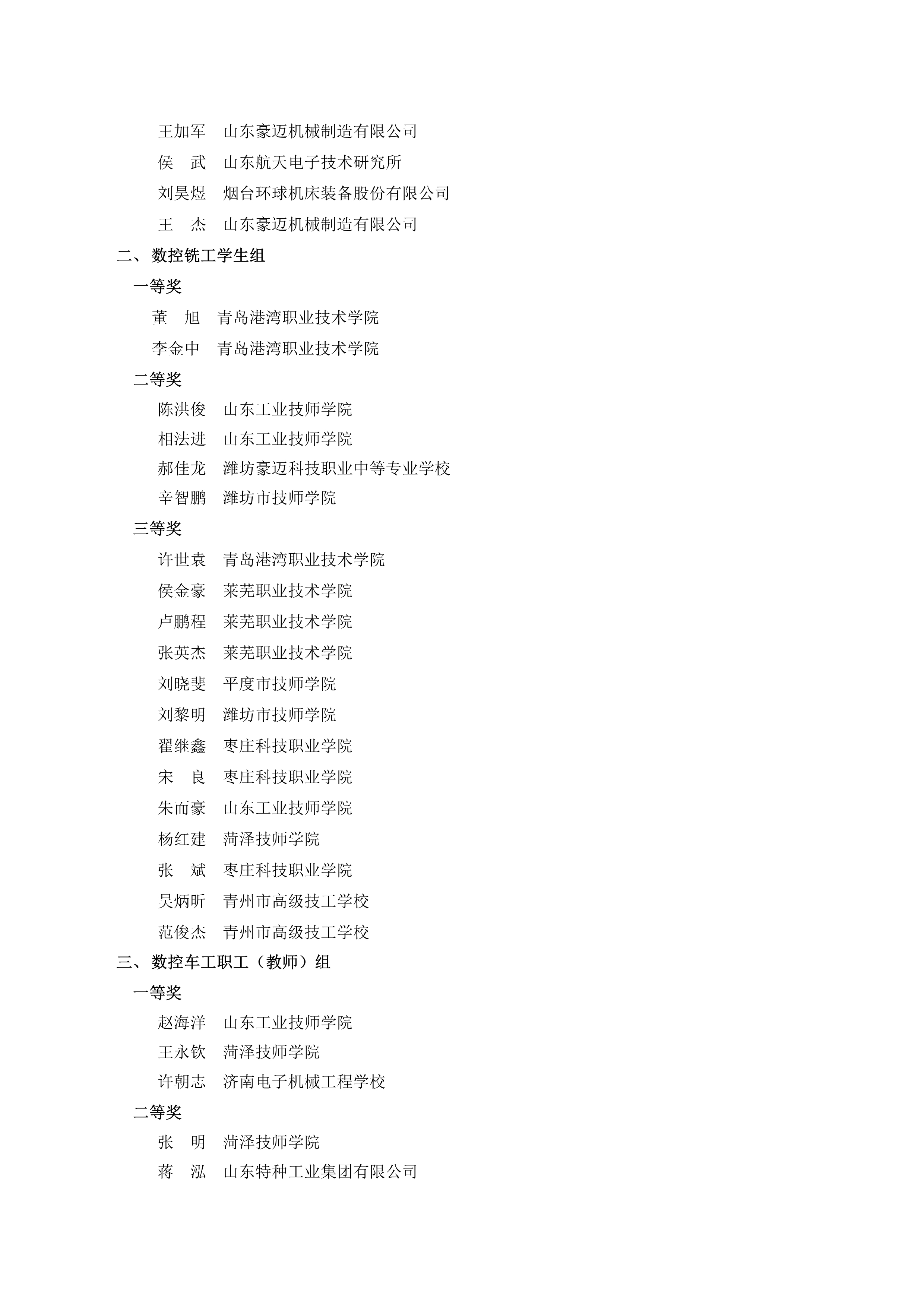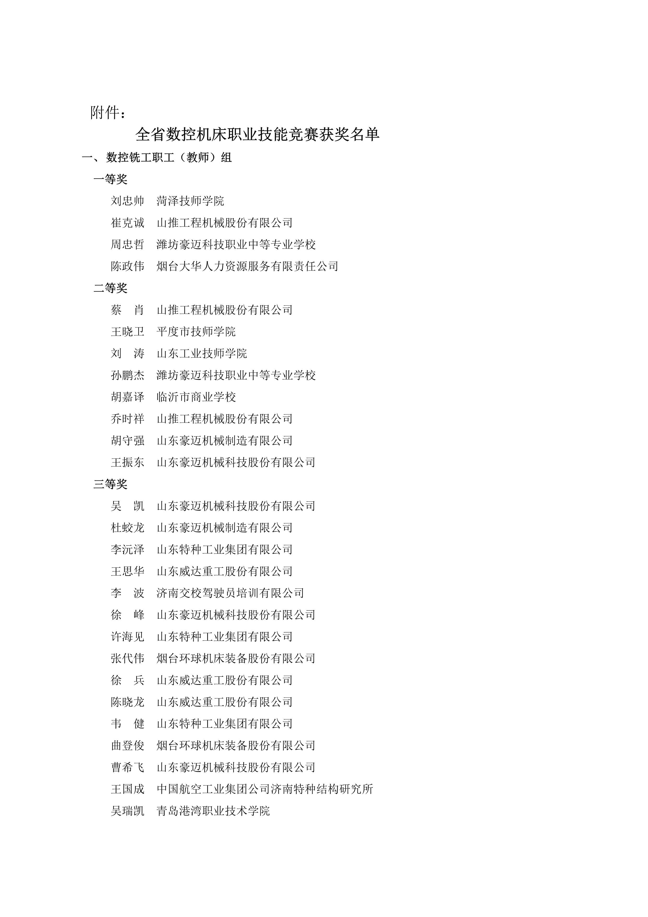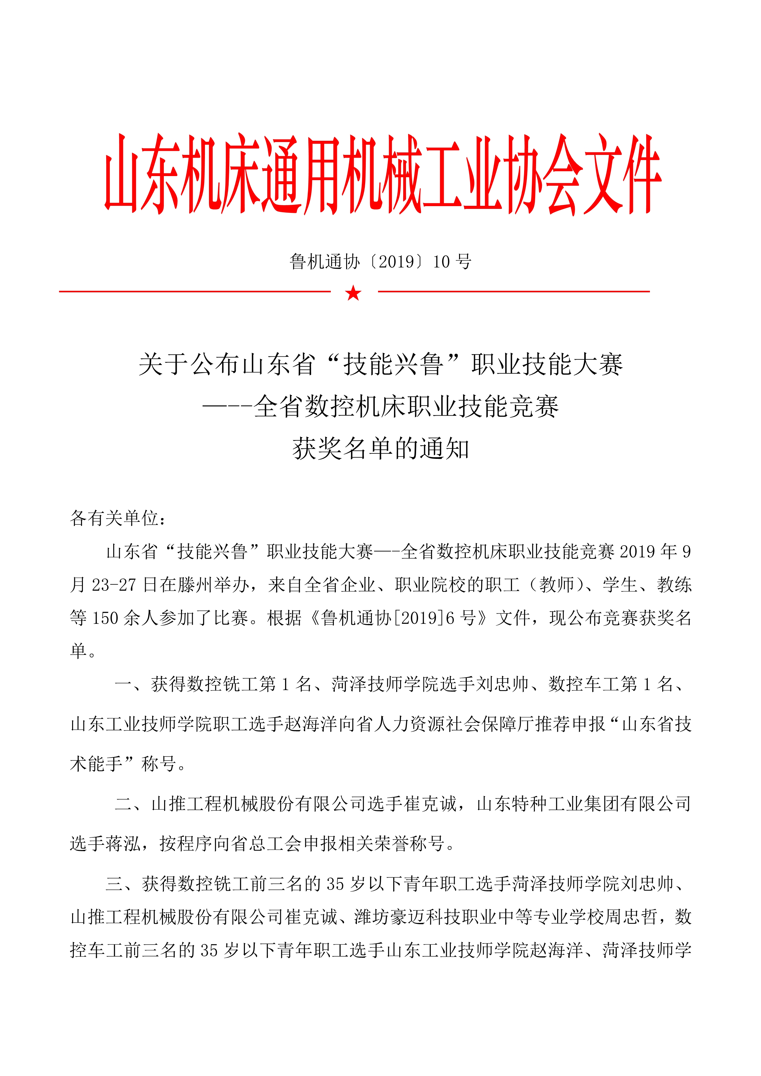 2019年关于公布山东省“技能兴鲁”职业技能大赛 —--全省数控机床职业技能竞赛 获奖名单的通知