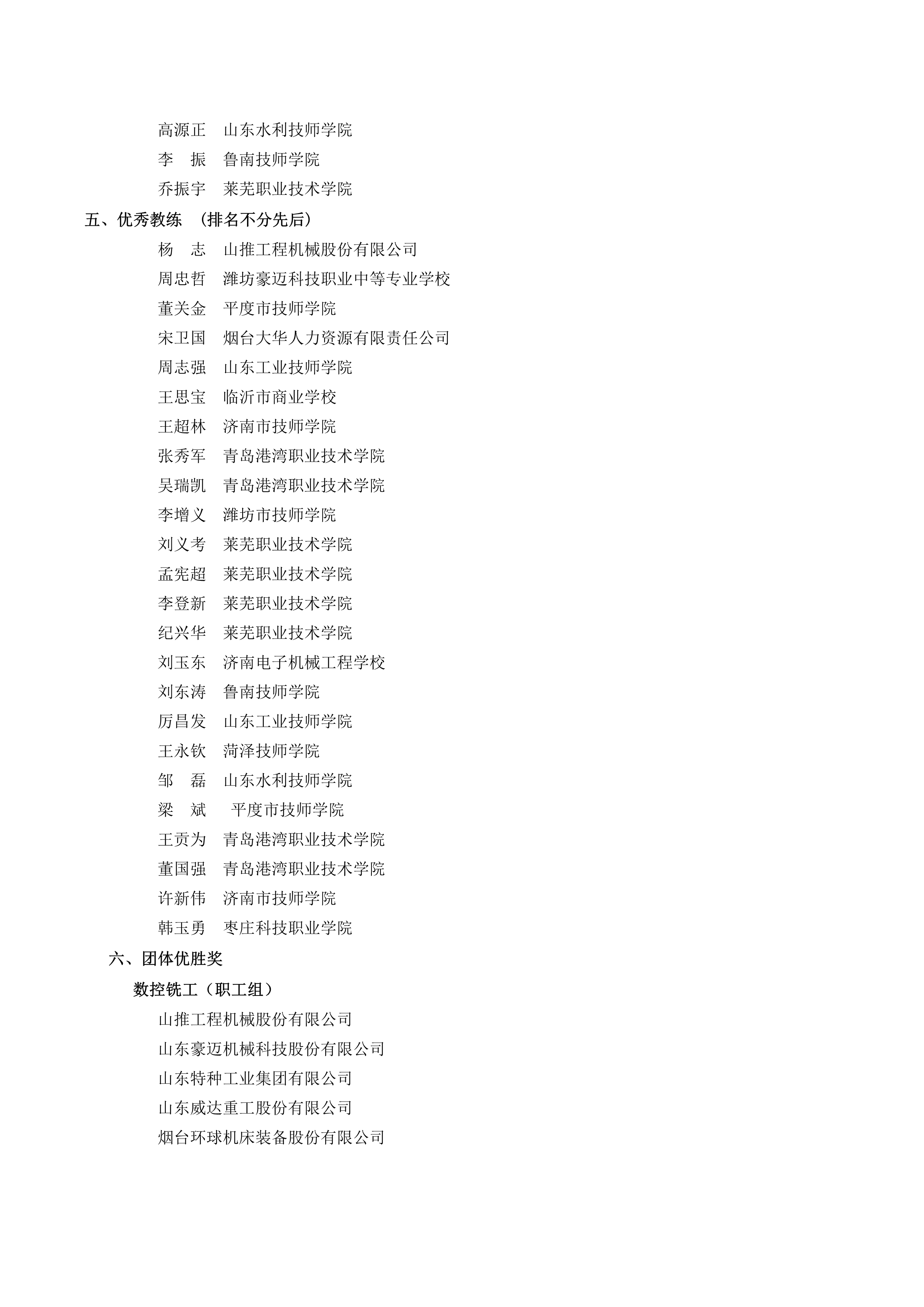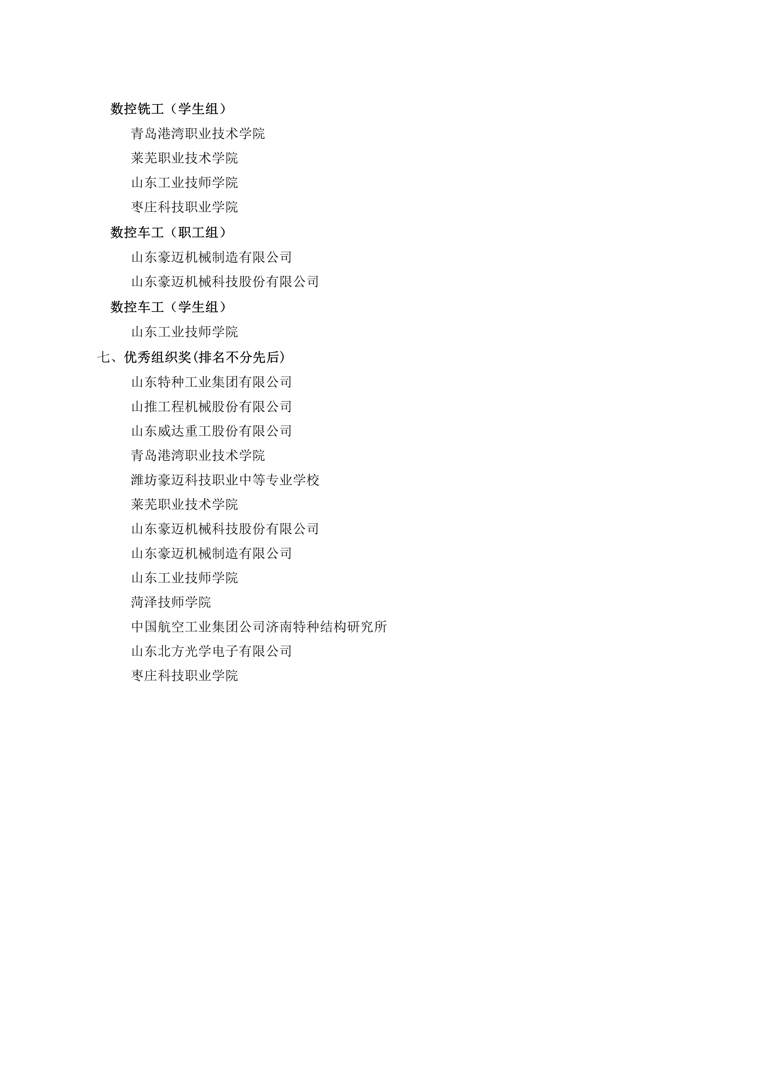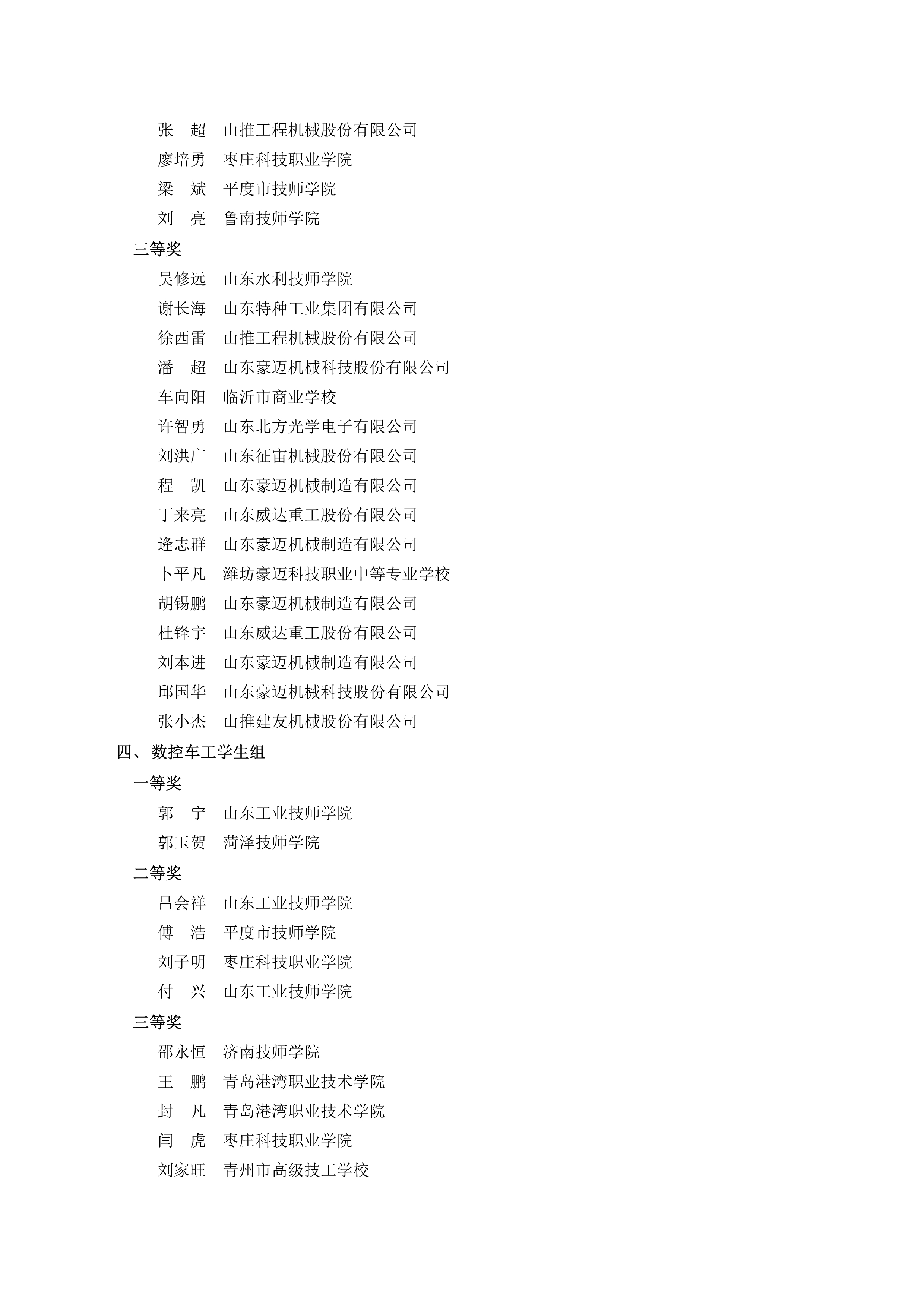 2019年关于公布山东省“技能兴鲁”职业技能大赛 —--全省数控机床职业技能竞赛 获奖名单的通知