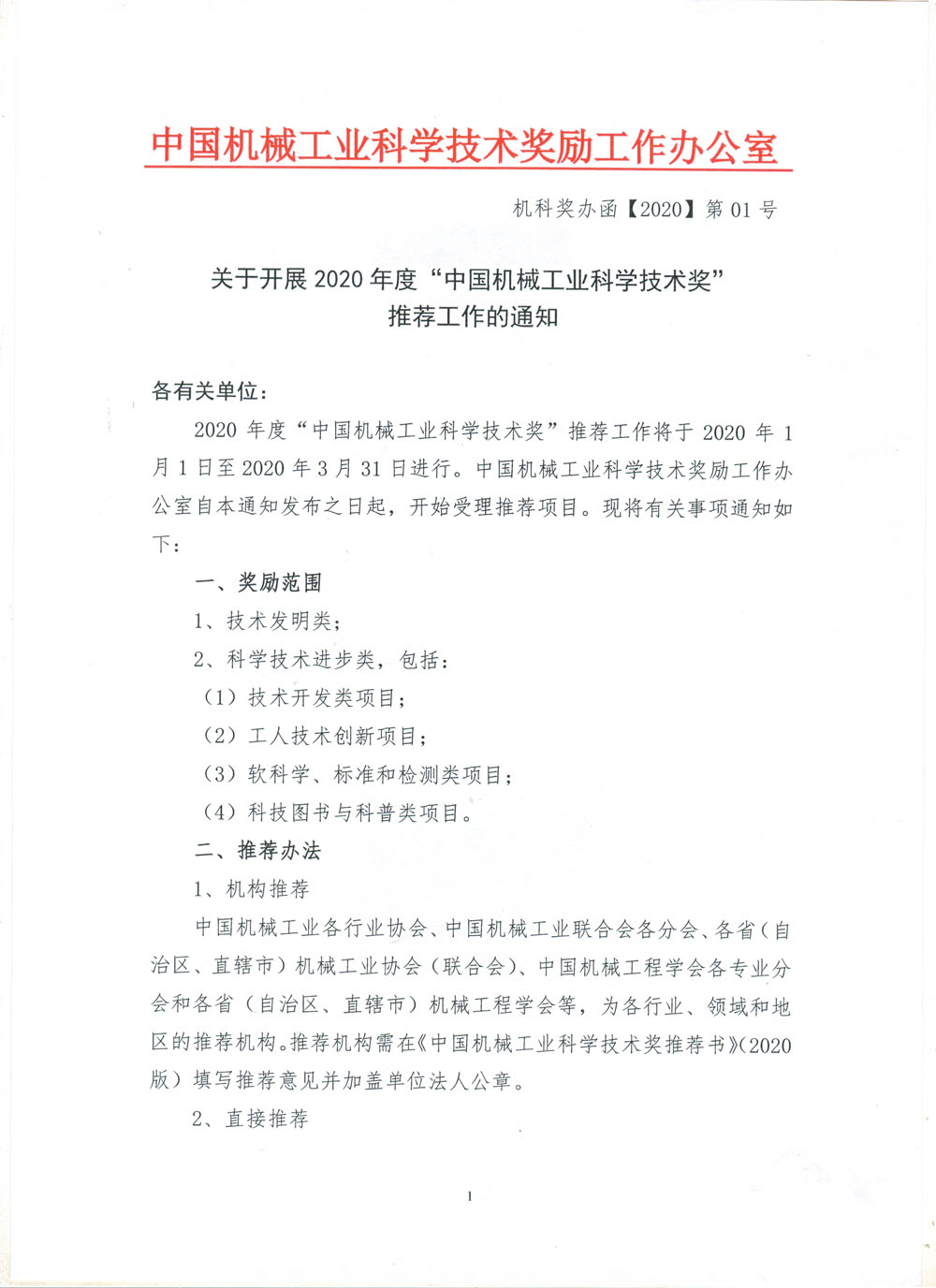 2020年度“中国机械工业科学技术奖”申报、推荐工作现已开始,山东机床通用机械工业协会为