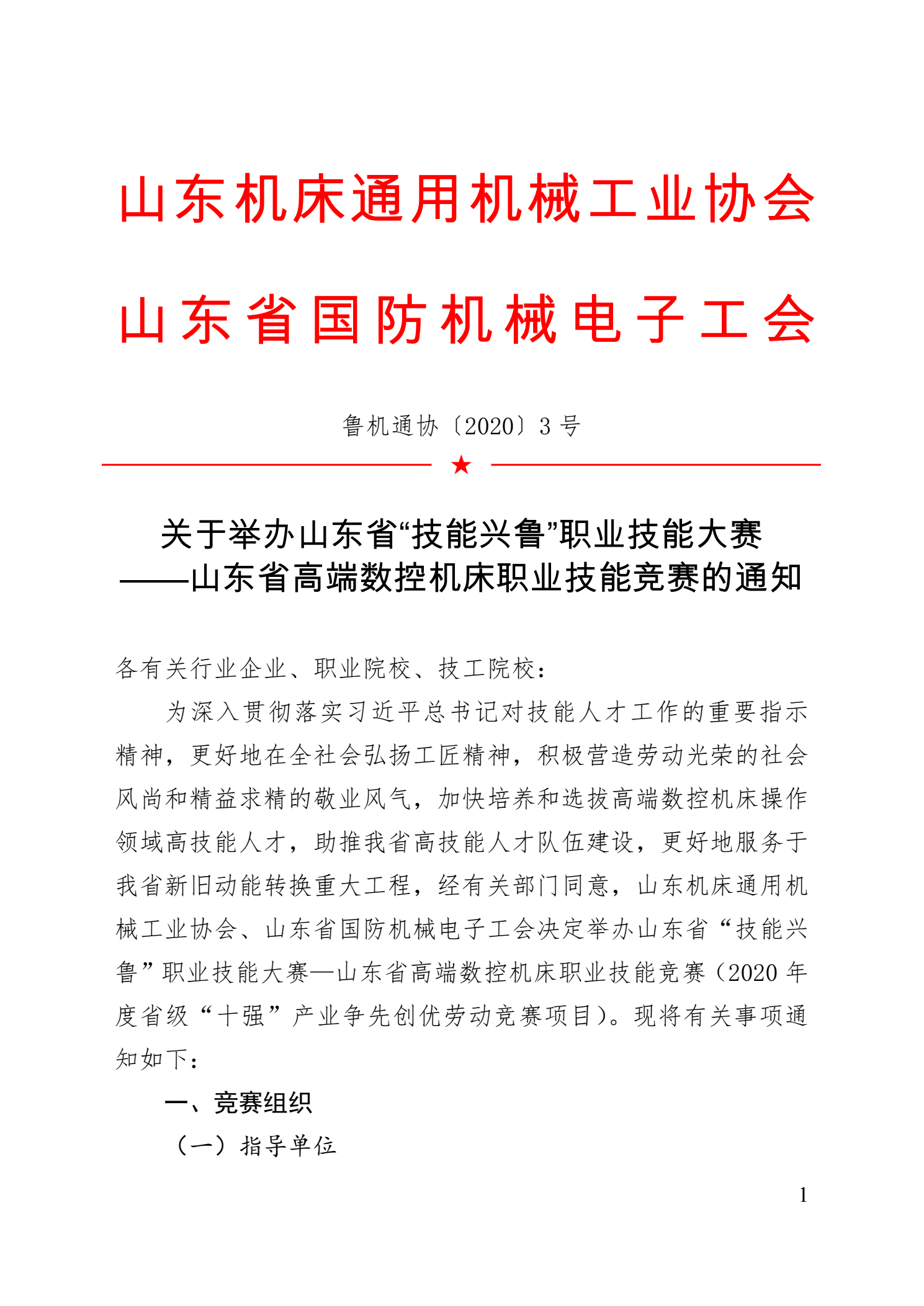 关于举办山东省“技能兴鲁”职业技能大赛-山东省高端数控机床职业技能竞赛的通知