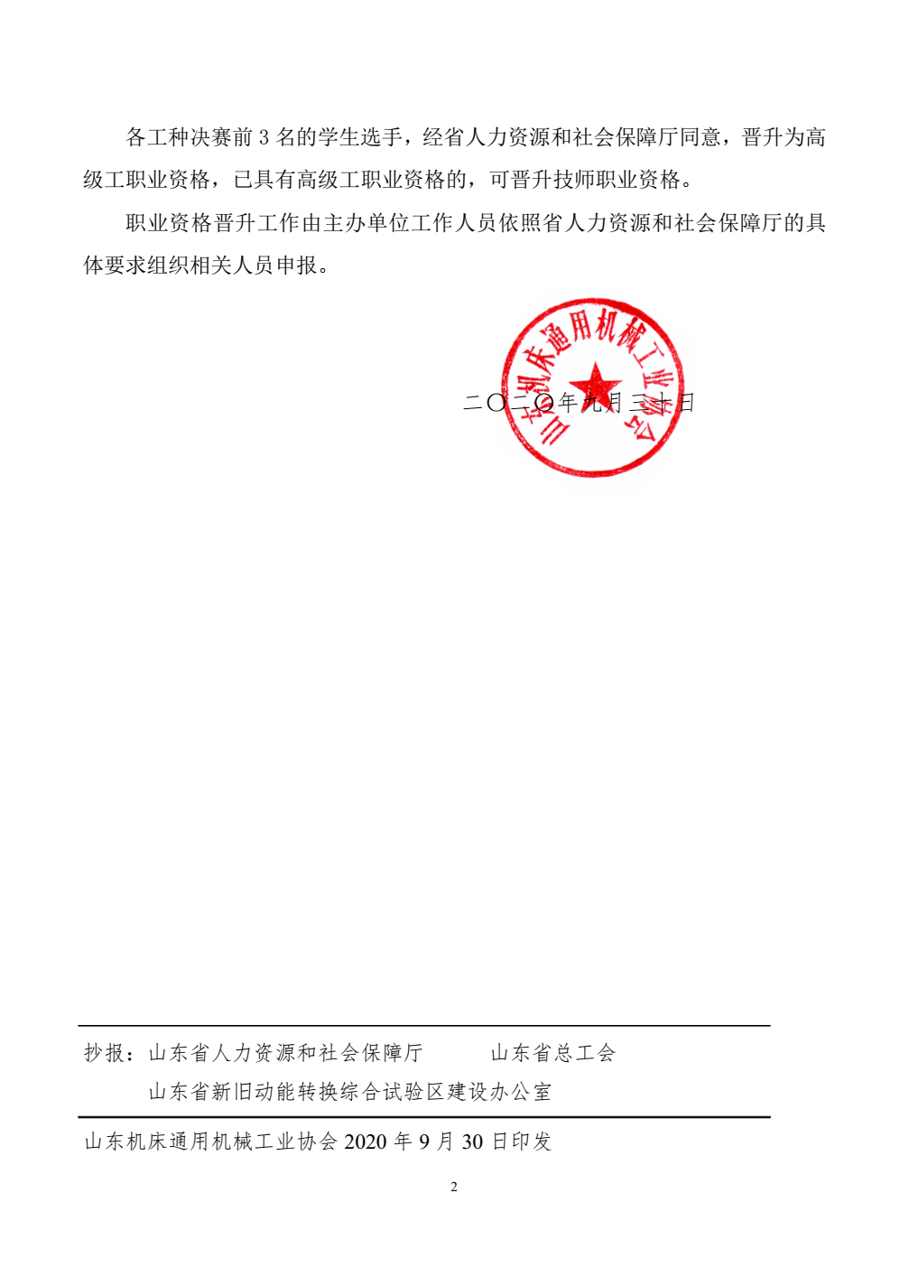 2020年关于公布山东省“技能兴鲁”职业技能大赛 —山东省高端数控机床职业技能竞赛成绩的通知