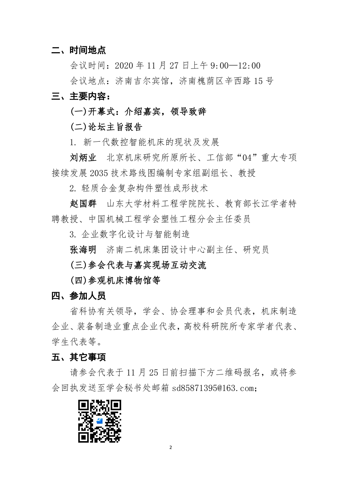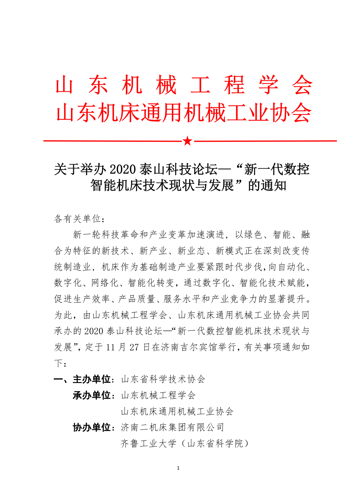 关于举办 2020 泰山科技论坛—“新一代数控智能机床技术现状与发展”的通知