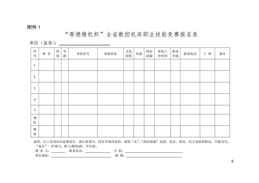 附件1:“蒂德精机杯”全省数控机床职业技能竞赛报名表