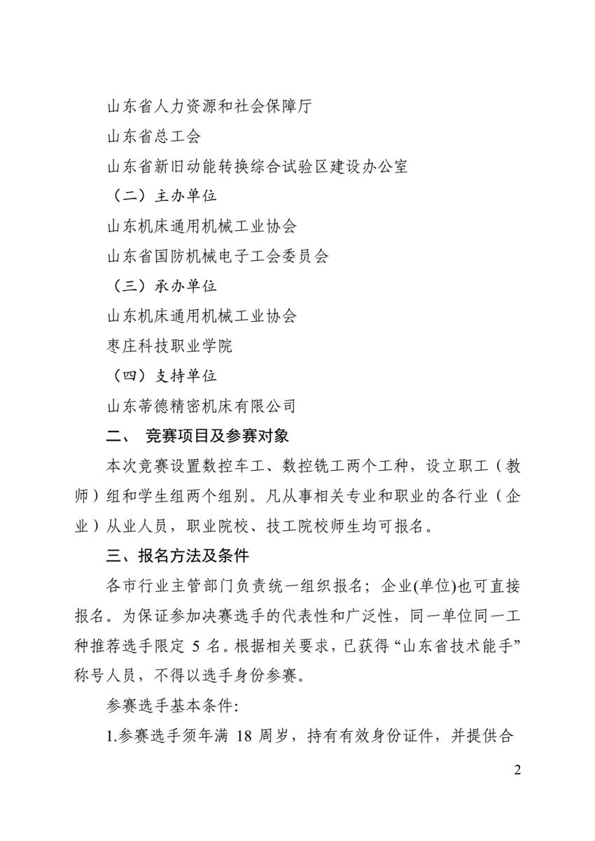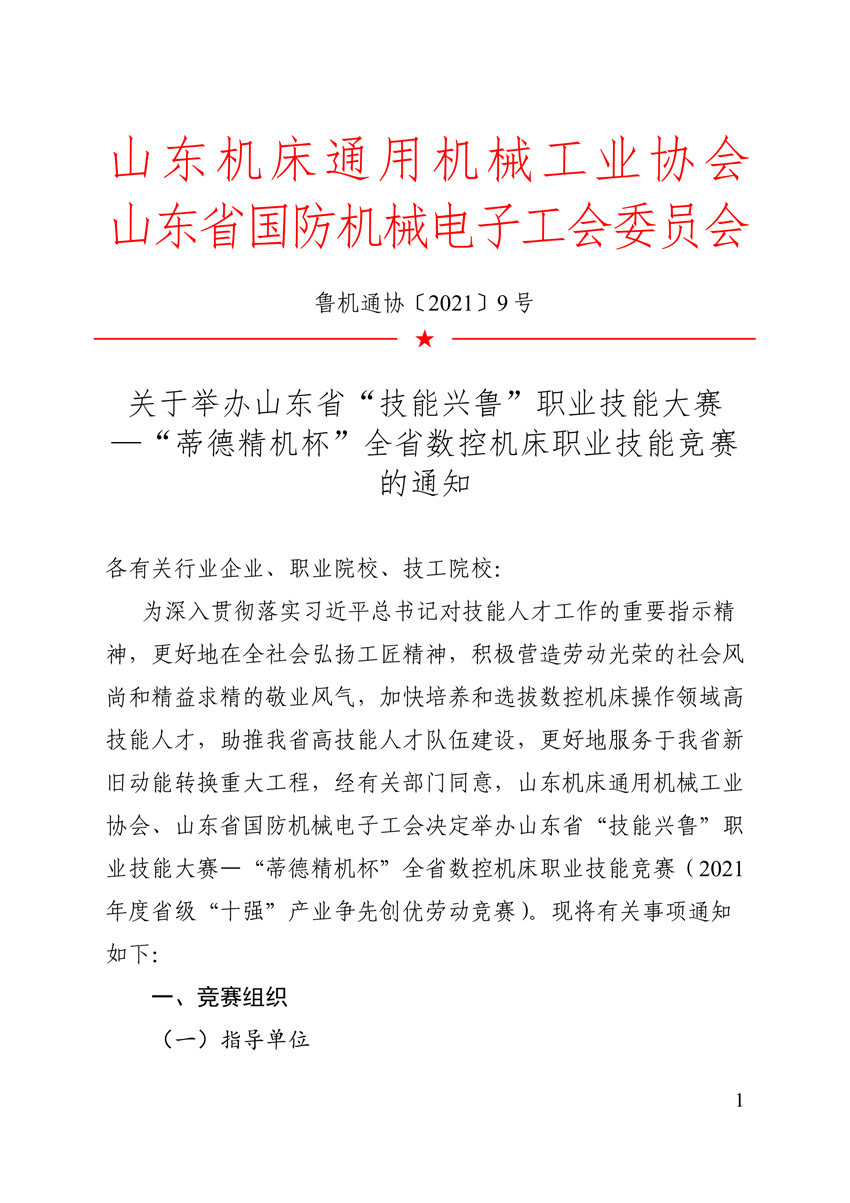 关于举办山东省“技能兴鲁”职业技能大赛—“蒂德精机杯”全省数控机床职业技能竞赛的通知