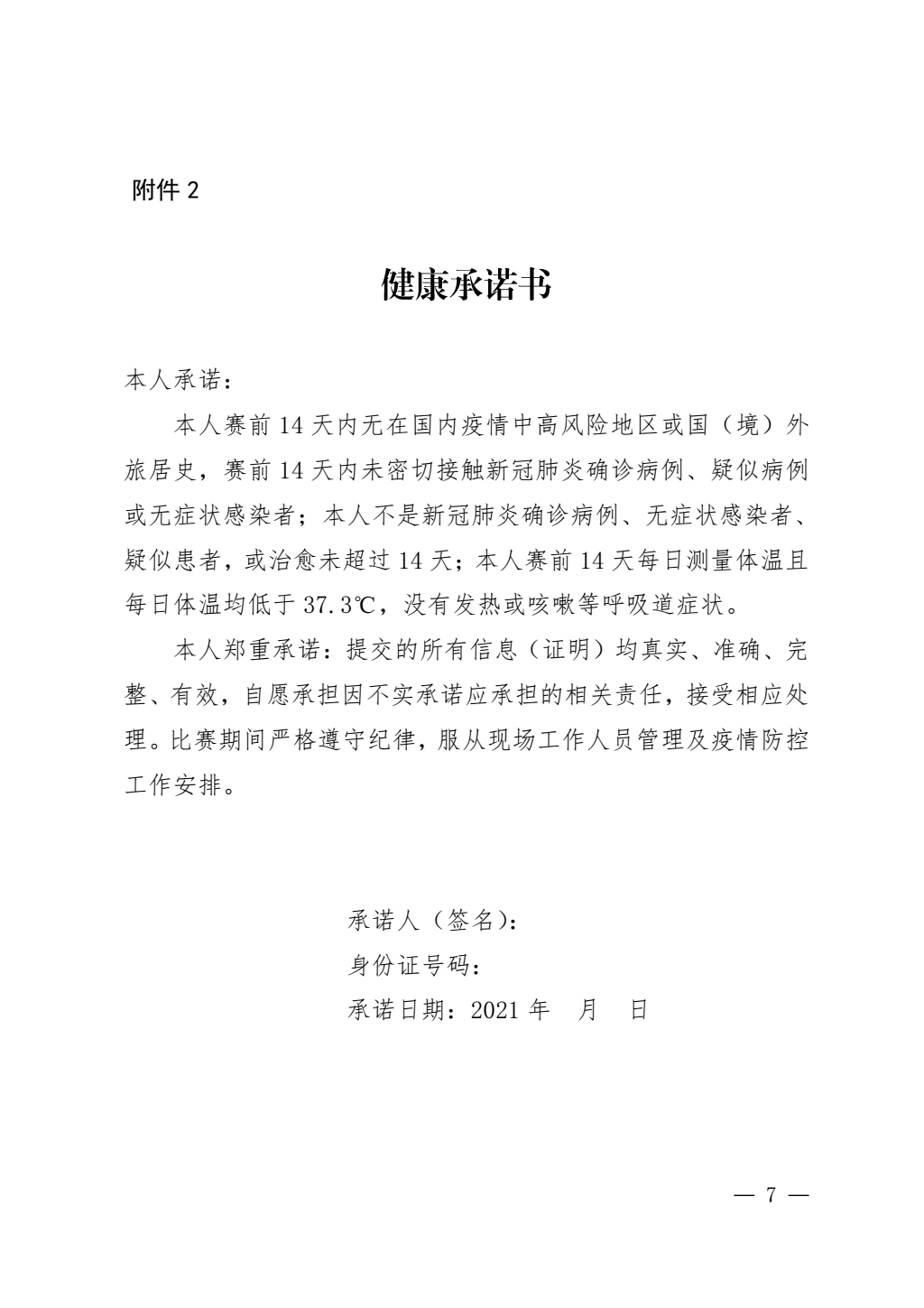 健康承诺书