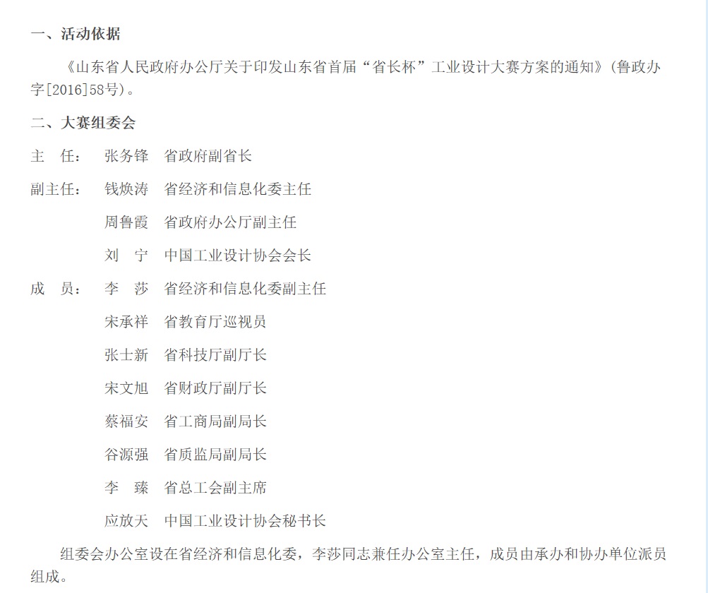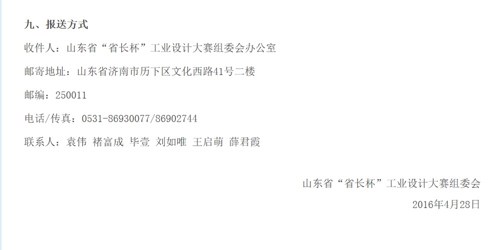 山东省首届“省长杯”工业设计大赛申报材料下载