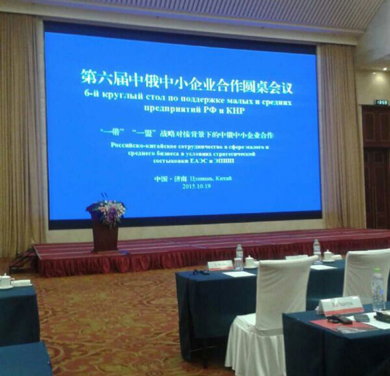 2015年10月19日,第六届中俄中小企业合作圆桌会议在山东大厦召开,会议的主题是“一带”“一盟”战略对接背景下的中俄中小企业合作。中联部副部长周力、中共山东省委常委兼济南市委书记王文涛、俄方团长公俄党议员团副主席阿列克谢·切帕分别致辞;中联部研究室孔根红参赞、山东省商务厅石光亮副厅长、山东省中小企业局王兆春局长、山东省交通运输厅王广鹏处长、沃洛格达州阿·维·科热夫尼科夫副州长、俄罗斯诺夫哥罗德州经济发展和贸易局叶·弗·博格丹诺夫局长等中俄双方政府官员介绍了有关情况;沃洛格达州“商城”公司、克里米亚共和国“URTF”公司、俄罗斯铁路总公司贸易之家的企业家们推介了拟合作的项目。