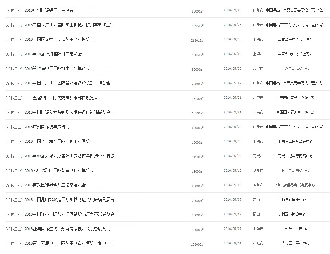 2016年8月国内工业机械展览会汇编
