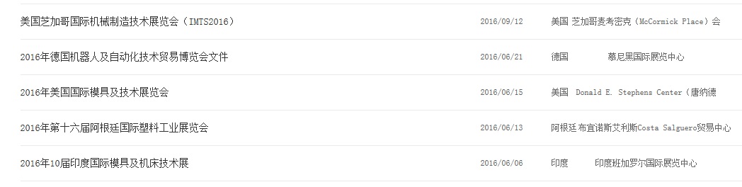 2016年6-9月境外工业机械展览会汇编