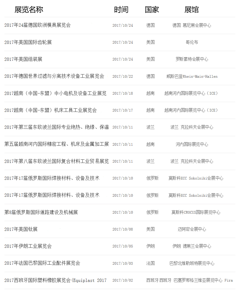2017年10月境外工业机械展览会汇编