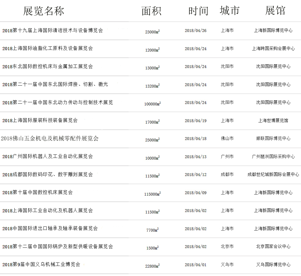 2018年4月国内工业机械展览会汇编